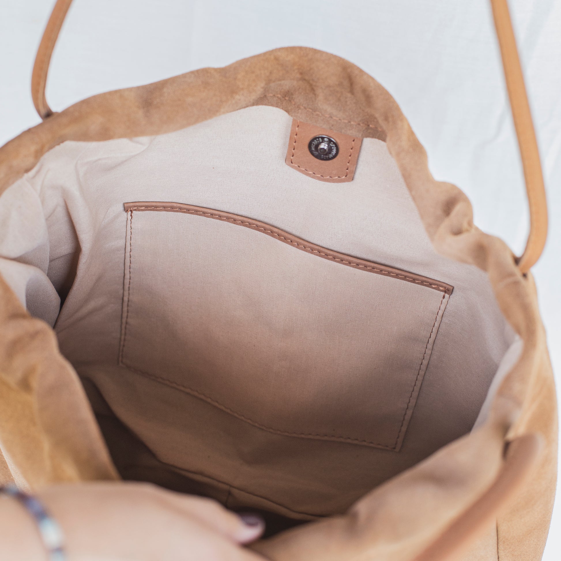 Confeccionada en cuero curtido vegetal y gamuza de la mejor calidad, suave y liviano que se pone más lindo con el uso.